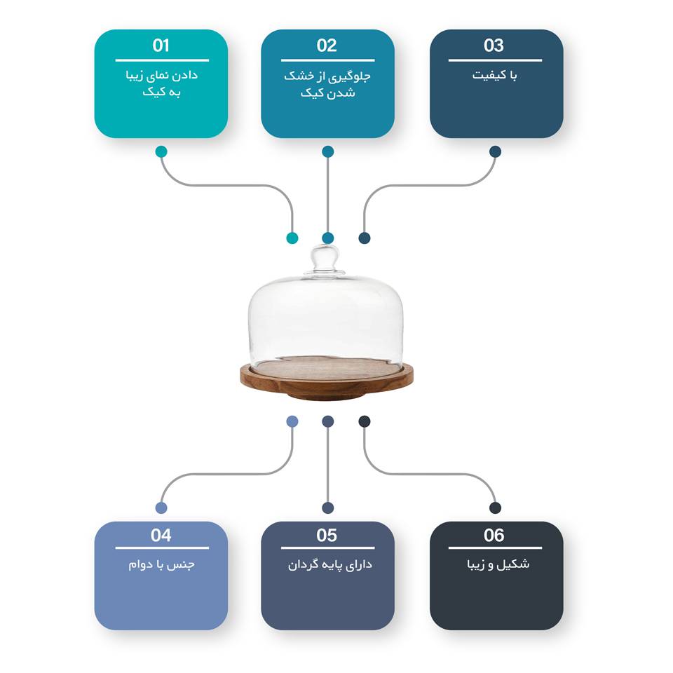 امروزه طراحی کیکها از تنوع بسیار زیادی در طرح و مدل برخوردار است. اگر اهل شیرینی پزی هستید و دوست دارید که خلاقیت خود را درون ظروفی زیبا و جذاب، به نمایش بگذارید، یکیاز ظروف مناسب برای شما، ظرف کیک «ژوانی» (Jovani) مدل «C130» است. ظرف کیک ژوانی با کف گردان یکیاز بهترین ابزارهای زیبا جهت نگهداری کیک و شیرینی و اقلام خوراکی دیگر است که با استفادهاز چوب و با دقت فراوان توسط مجموعه تولید منسوجات خانگی ژوانی تولید و به بازار ارائه شده. این ظرف بسیار مناسب چیدن سفره یلدا، مهمانیها و حتی یک میز تولد خانوادگی است. جنس بدنه آن چوبی بوده و درب آن شیشهای است و دارای پایه گردان است و وزنی معادل 1340 گرم دارد. این ظرف برای نگهداری انواع کیک و شیرینی مناسب بوده البته باید توجه کنید که برای قرار دادن در مایکروویو مناسب نیست. بهدلیل شیشهای بودن درب آن، میتوان محتویات داخل ظرف را بهخوبی مشاهده کرد.